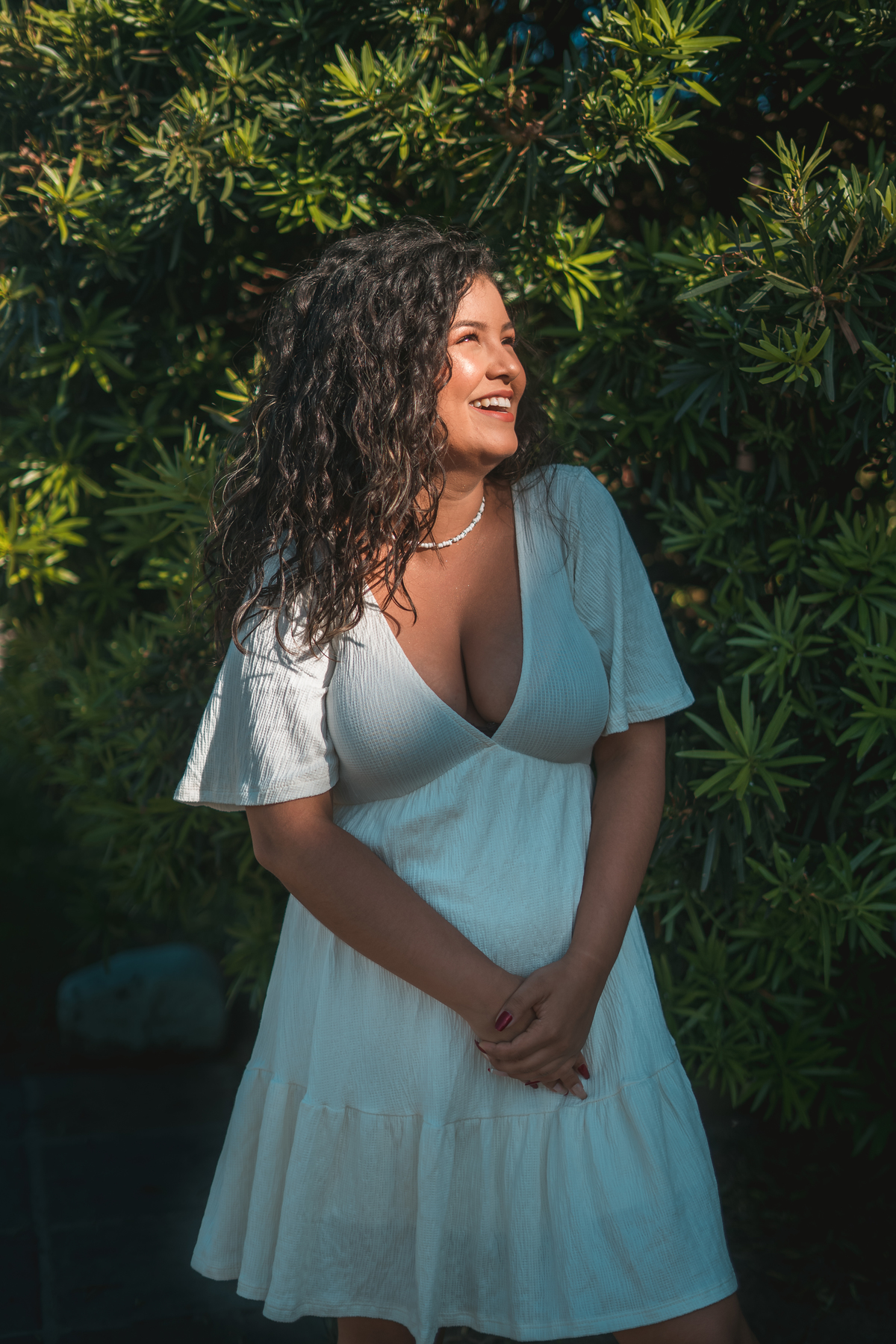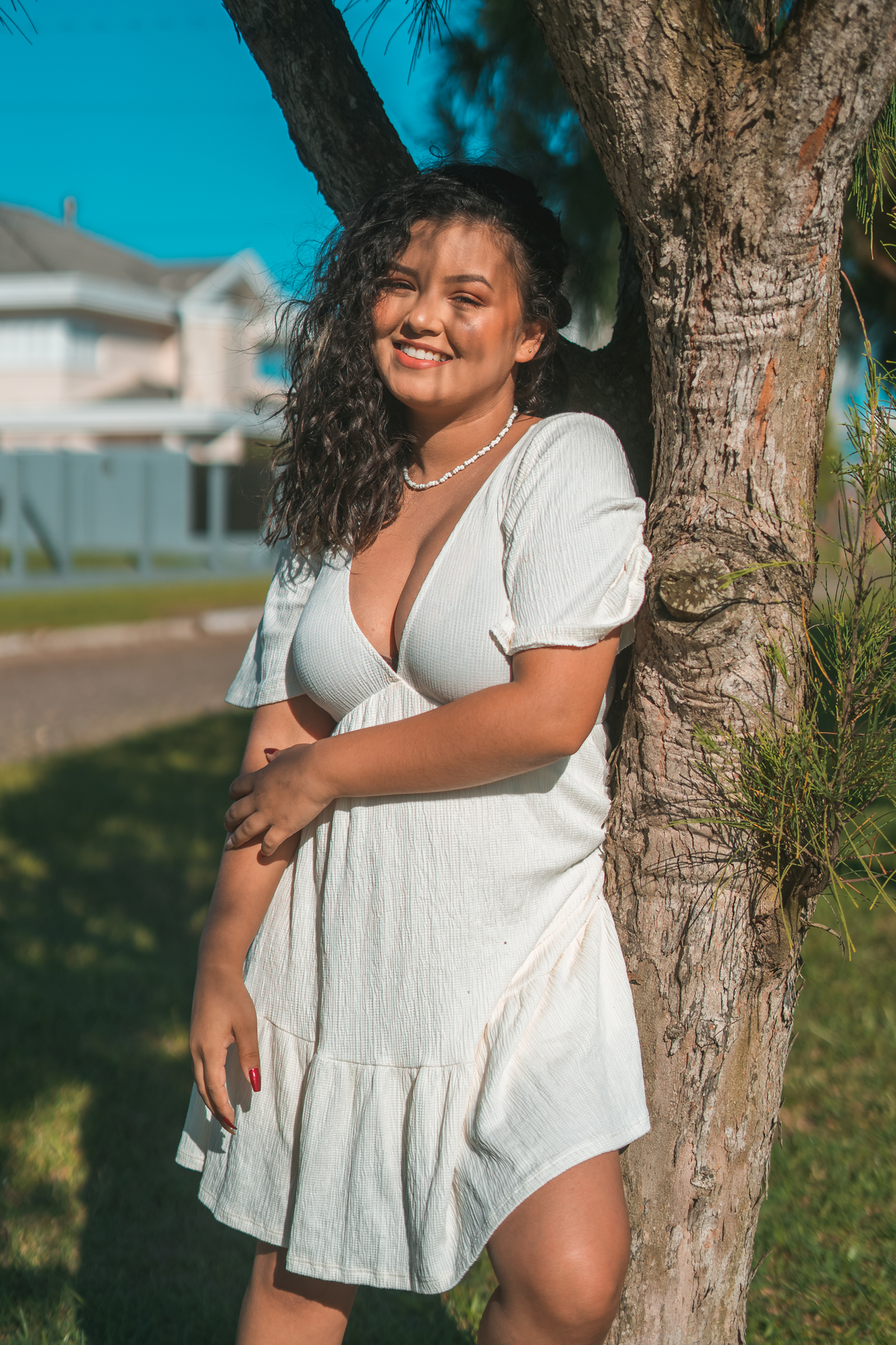 A Fran queria fotos com flores, então eu procurei pela cidade alguma rua que fosse bonita e tivesse flores, como era o desejo dela.